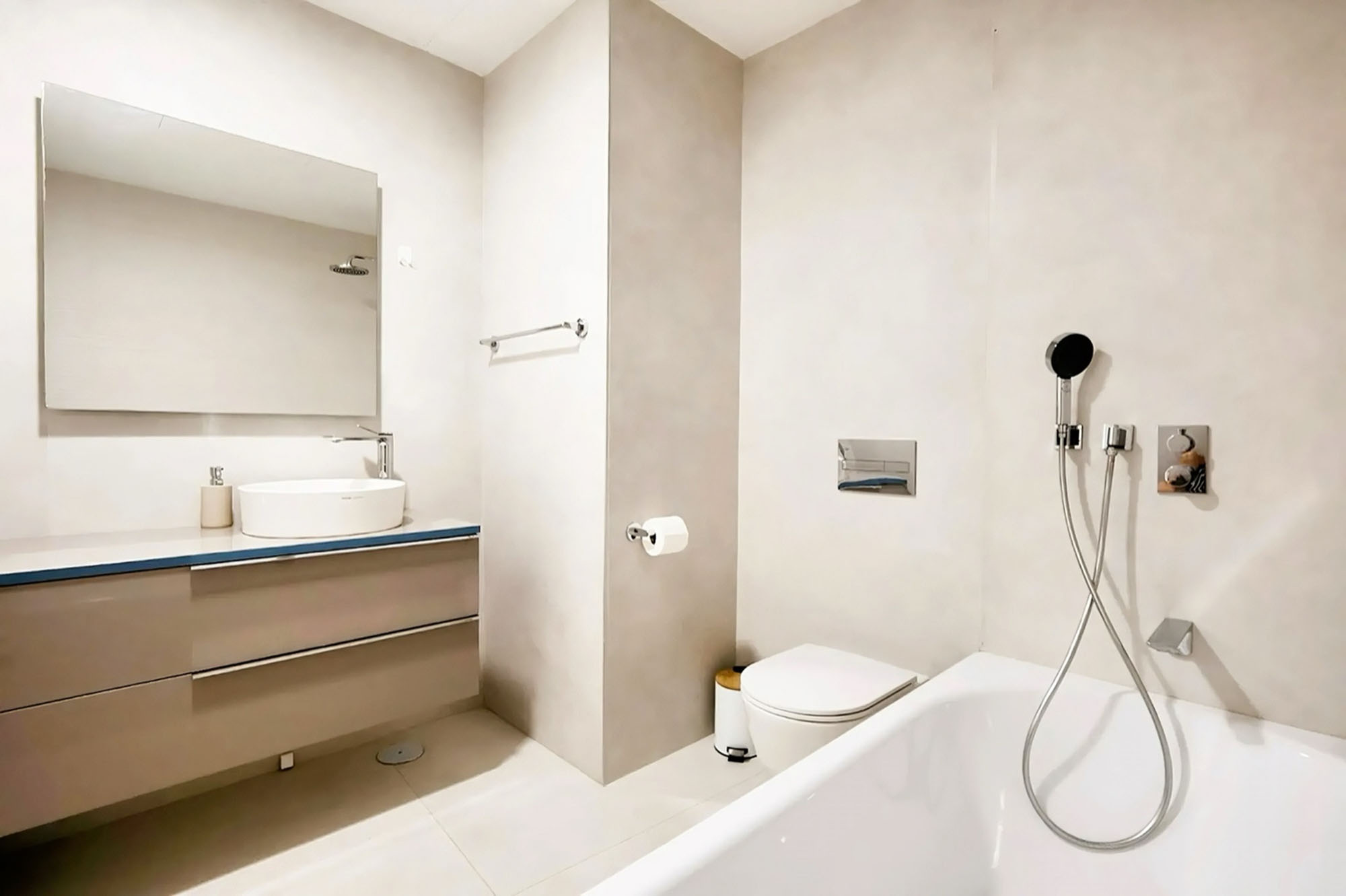 • 3 eleganckie łazienki, w tym główną z wanną i prysznicem,